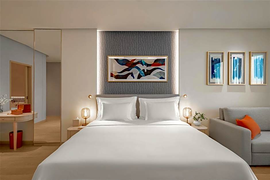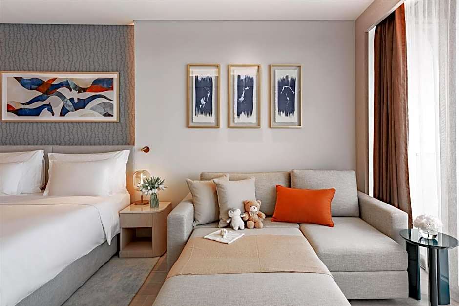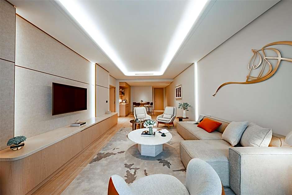 Measuring 62 square yards, this spacious room overlooks the green landscape and the racetrack. The smart bathroom is equipped with high tech TV screen and modern amenities.